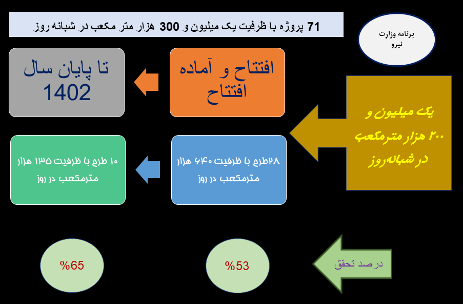 در 28 ماه منتهی به 6 بهمن 1402، 28 تصفیهخانه فاضلاب با ظرفیت 640 هزار متر مکعب در روز برای استفاده بهینه از منابع به بهرهبرداری رسیده است.
