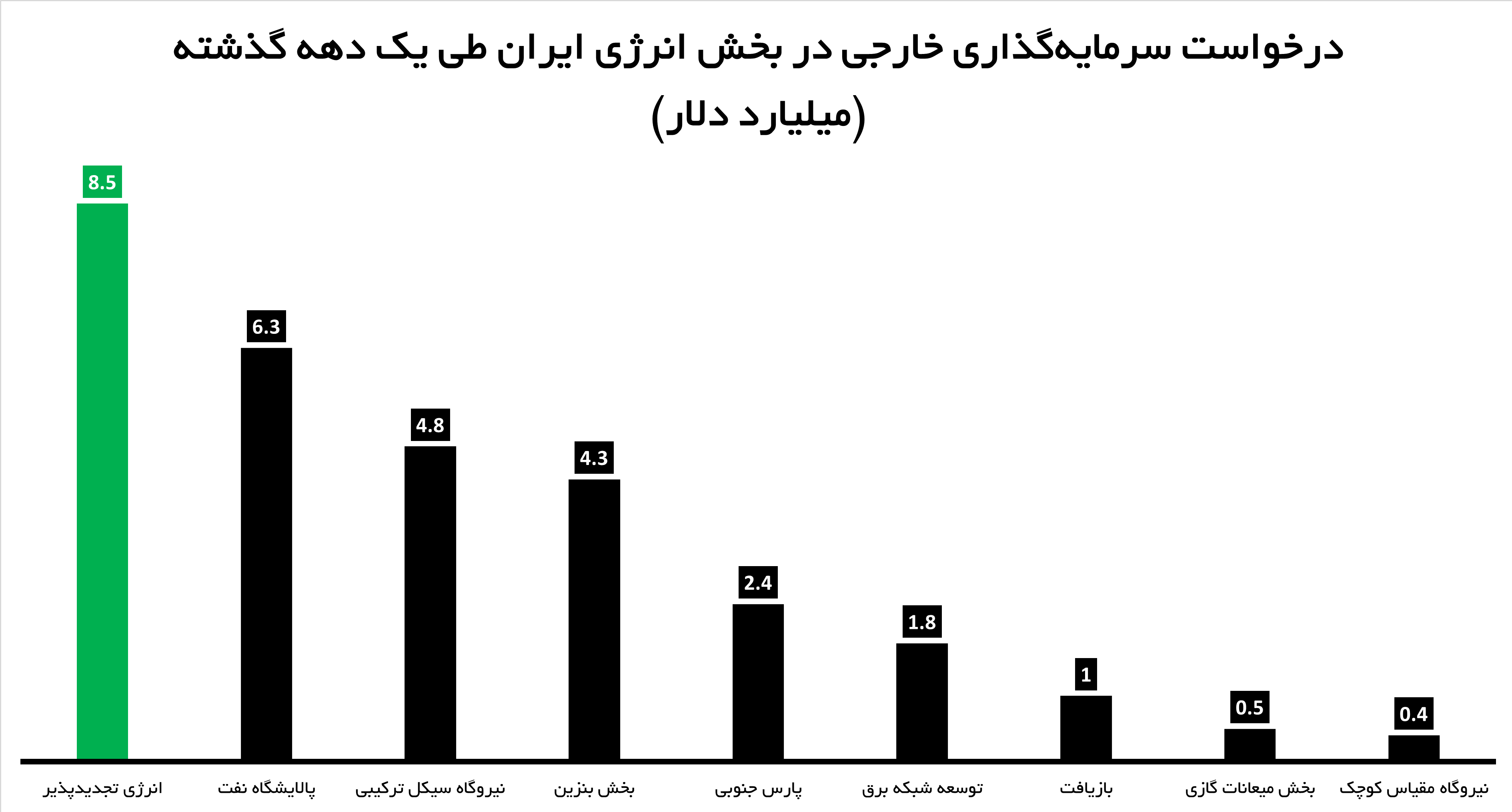 در حالی که شرکتهای خصوصی خارجی طی دهه 90 درخواست سرمایهگذاری 8.5 میلیارد دلاری در زمینه تجدیدپذیرهای ایران داشتند.