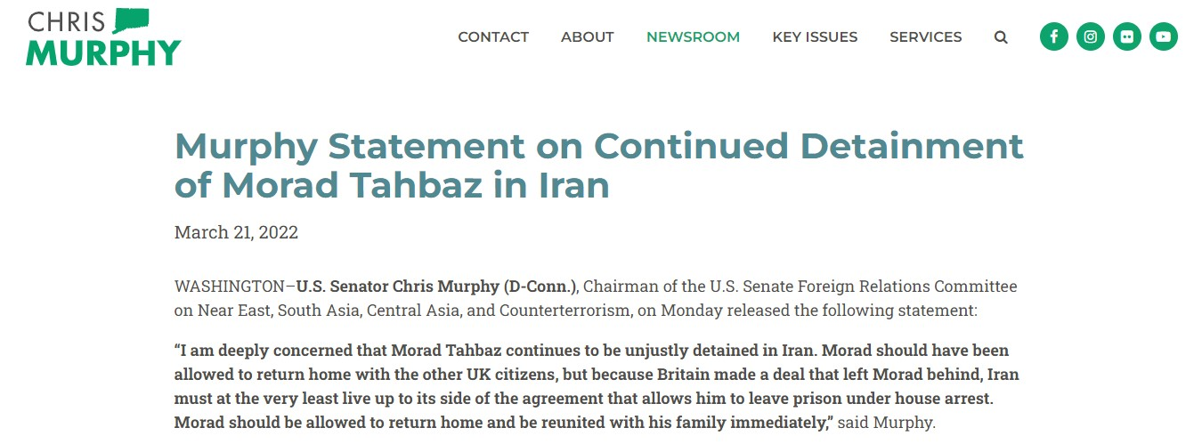 حمایت کریس مورفی، سناتور آمریکایی از مراد طاهباز