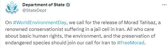 اکانت رسمی وزارت امورخارجه آمریکا در توییتر، به عنوان یک نهاد رسمی و بسیار مهم ایالات متحده، خواستار آزادی مراد طاهباز شده و برای آن، فراخوان داده است.