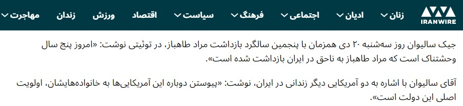 این رسانه اصلاح طلب، ضمن انتشار تصویر مراد طاهباز و سایر جاسوسها با پوشش محیط زیستی، نگران زندانی بودن این افراد شده و در گزارش خود، همچون مقامات آمریکایی، طاهباز و همراهانش را، جاسوس عنوان نکرده است.