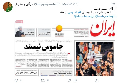 مژگان جمشیدی یکی از خبرنگاران روزنامه اعتماد و حمایت از جاسوسان محیط زیستی