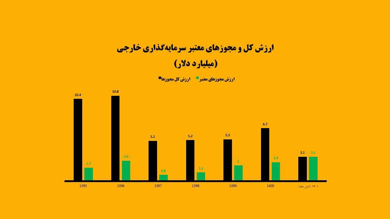 دقت کنید که در تعریف این سازمان، مجوز معتبر سرمایهگذاری خارجی به معنای ارزش پروژههایی است که تعریف شده و منابع مالی آنها در حال تزریق است و این تعریف با تعریف جذب سرمایهگذاری مستقیم خارجی تفاوت دارد.