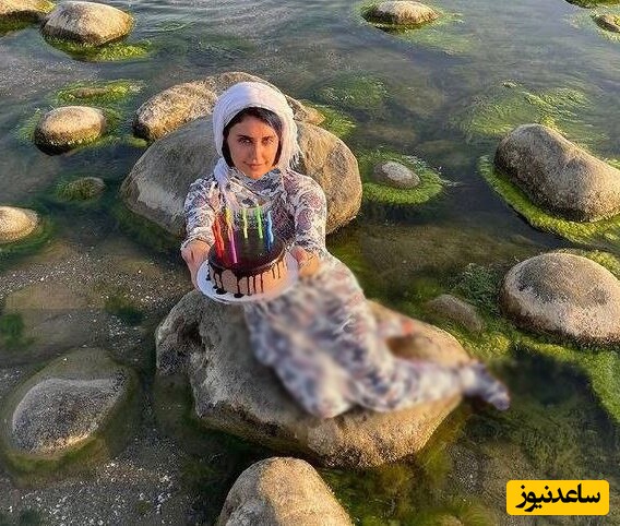 الناز شاکردوست با کیک تولد شکلاتی عجیب روی سنگ وسط آب!