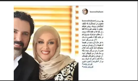 کوروش تهامی اخیراً در اینستاگرام عکسی از خود و همسرش به اشتراک گذاشت و ضمن دفاع از رابطهشان، شایعاتی که توسط برخی صفحات زرد در فضای مجازی منتشر شده را تکذیب کرد. او در این باره نوشت: