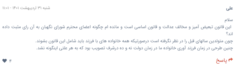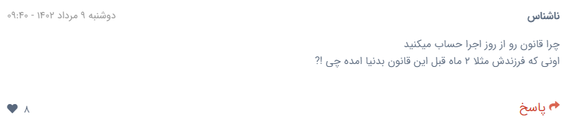 کاربران دیگر نیز به جاماندن متولدین قبل از تصویب طرح اشاره کردند:
