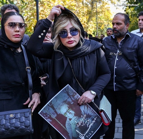 آرایش غلیظ نیوشا ضیغمی در مراسم تدفین داریوش مهرجویی و همسرش / زننده و زشت !