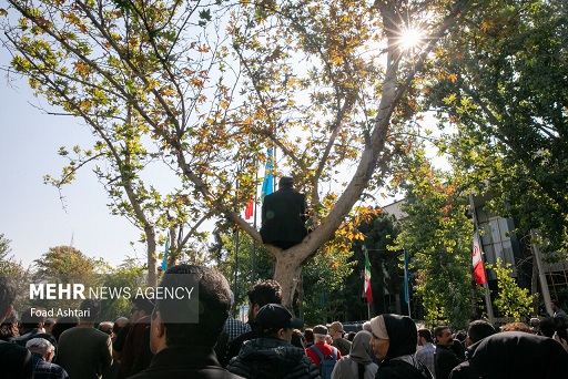 تصویری میبینیم از شخصی که بر بالای یک درخت نشسته و مراسم را مشاهده میکند و شاید هم در حال عکاسی یا فیلمبرداری است که به هر حال این تصویر حسابی در فضای مجازی دست به دست شده و سوژه کاربران شده است.