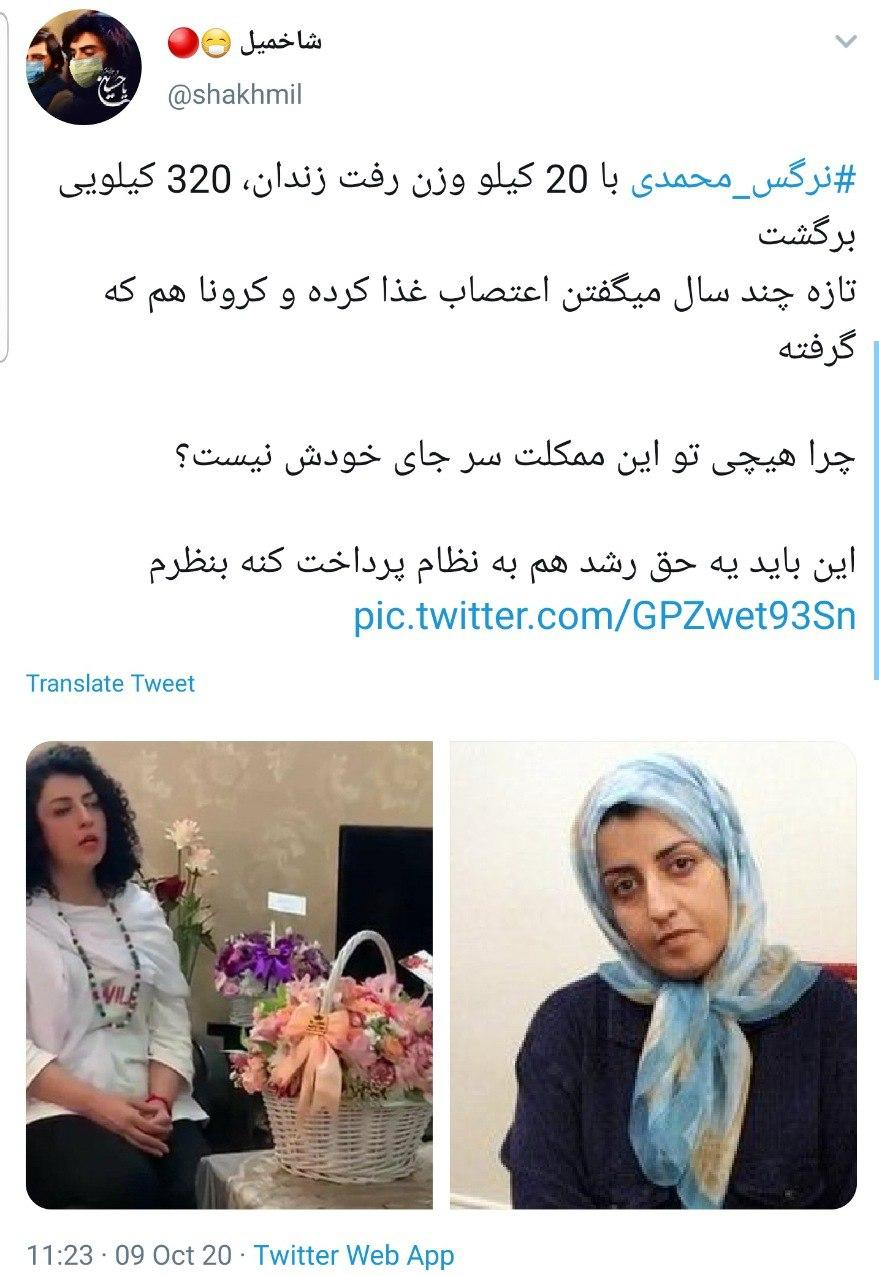 یکی دیگر از کاربران فضای مجازی در این باره می نویسد: «چگونه است که طی سالهای اخیر مدام میگویند او از حق صحبت با فرزندان خود محروم است و خانوادهاش تایید میکنند اما خانم محمدی مدام بیانه میدهد و گفتگو میکند؟»
