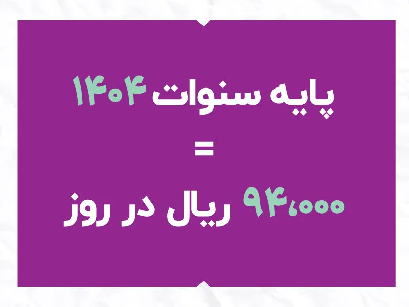 پایه سنوات برای کارگرانی که سابقه کاری حداقل یک سال دارند، روزانه ۹۴,۰۰۰ ریال و بهصورت ماهانه حدود ۲,۸۲۰,۰۰۰ ریال محاسبه میشود.