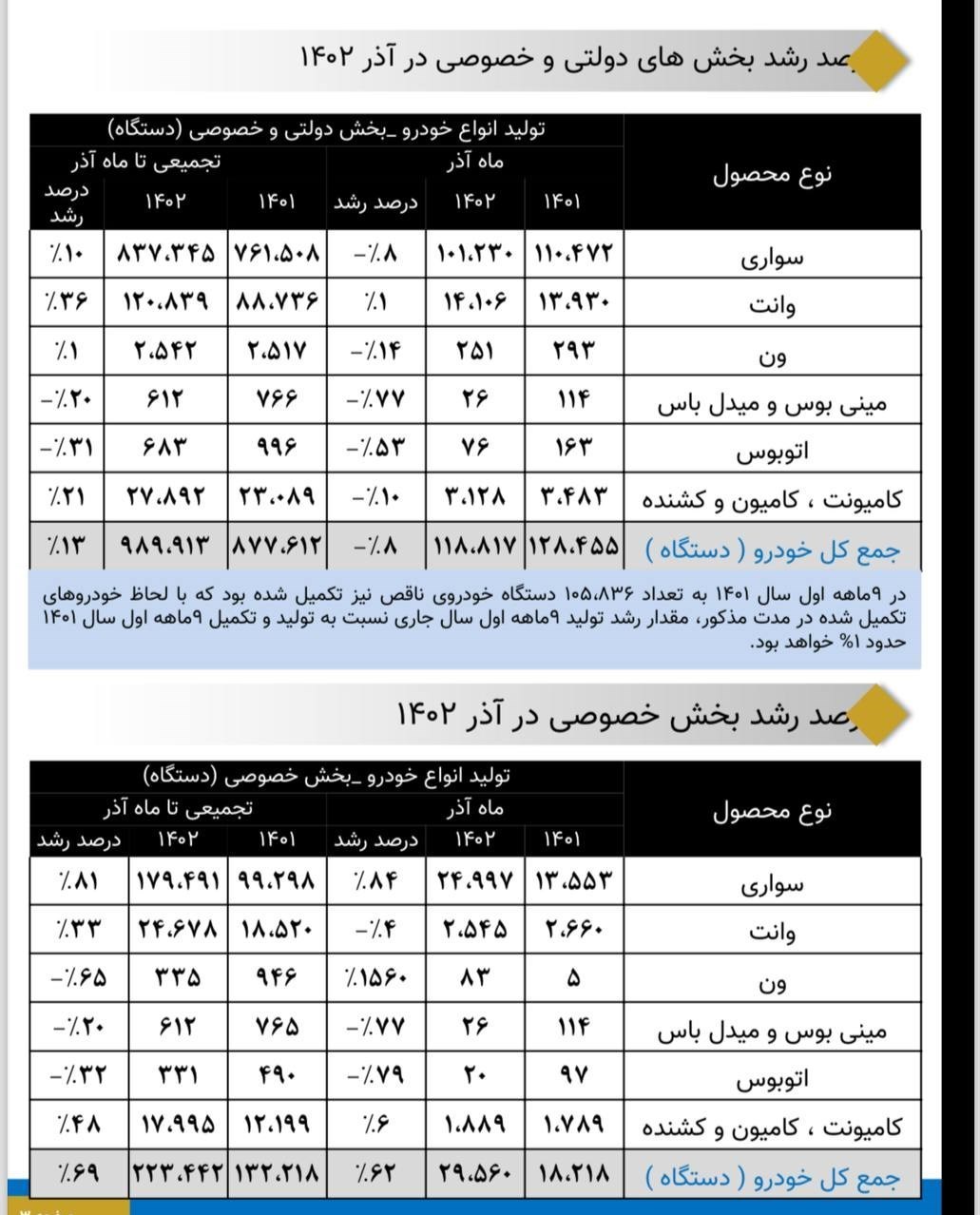 همچنین حدود 223 هزار دستگاه خودرو معادل 23 درصدِ تولید، سهم تولید در بخش خصوصی است که نسبت به تولید 132 هزار دستگاه در مدت مشابه سال گذشته، حدود 69 درصد رشد تولید را نشان میدهد.