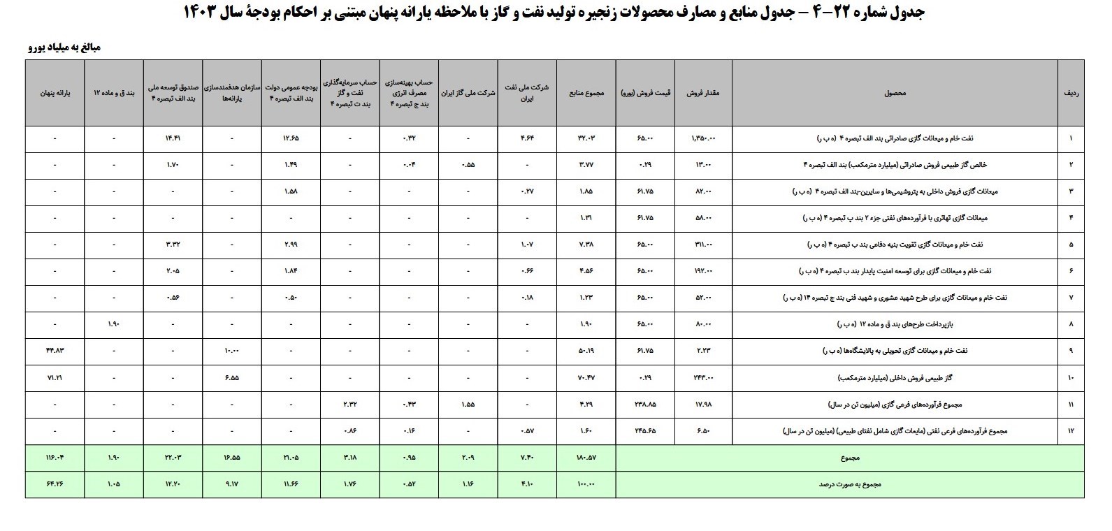 هرچند بسیاری مفهوم یارانه پنهان در اقتصاد ایران را با توجه به جهشهای پیاپی نرخ ارز یک مفهوم نه چندان ملموس قلمداد میکنند اما در جدول مابع و مصارف محصولات زنجیره تولید نفت و گاز با ملاحظه یارانه پنهان میبینم که دولت و مجلس 44 میلیارد یورو از محل فراوردهای نفتی و 71 میلیارد یورو از محل گاز طبیعی، یارانه پنهان محاسبه و آن را در پیوست بودجه 1403 گنجانده اند.