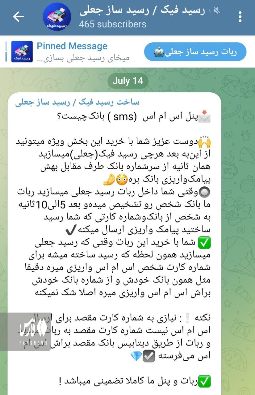 رسیدهای بانکی جعلی که بستر بسیاری از کلاهبرداریها شده است، براساس گزارشات مردمی در سامانه سوتزنی خبرگزاری فارس، خیلی راحت با ربات تلگرامی کمتر از یک دقیقه با شماره کارت و زمان مدنظر ساخته میشود.